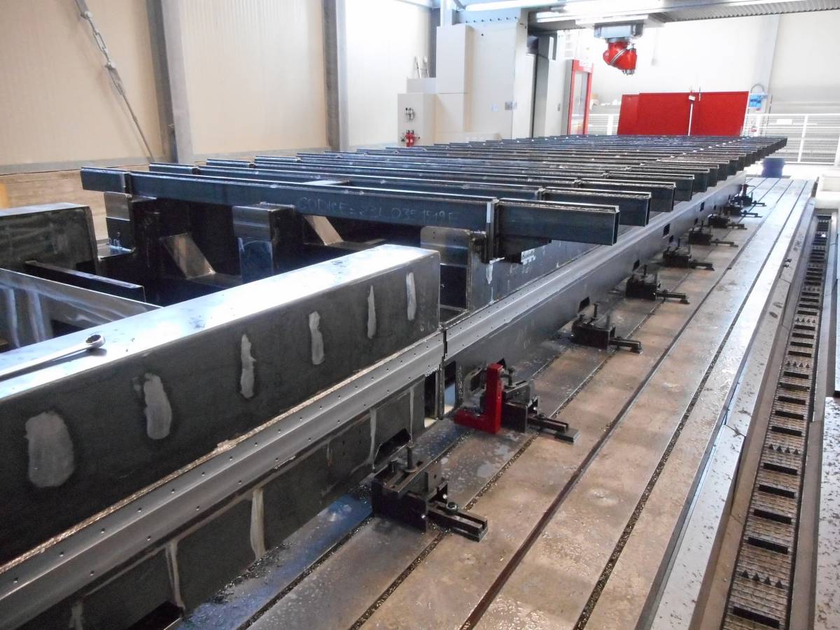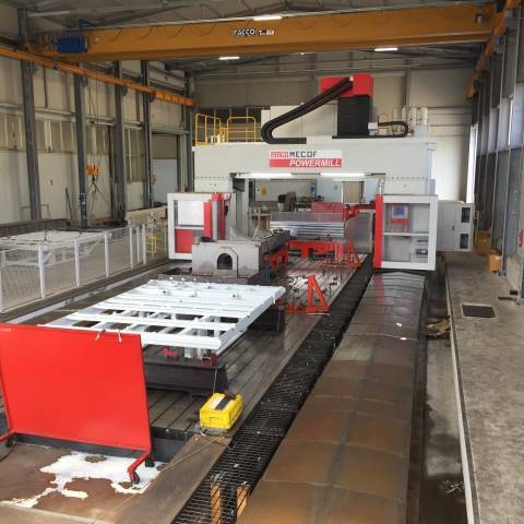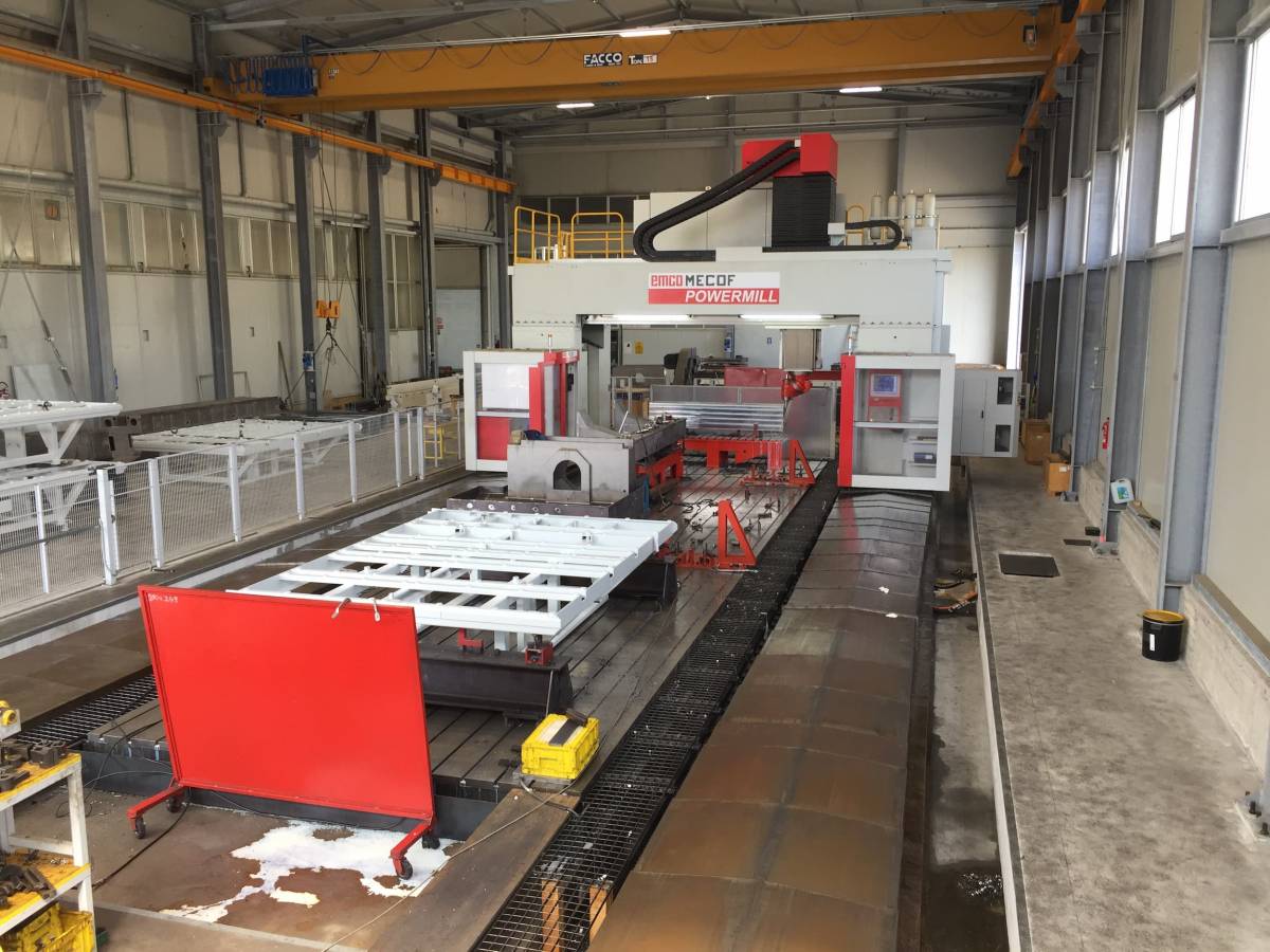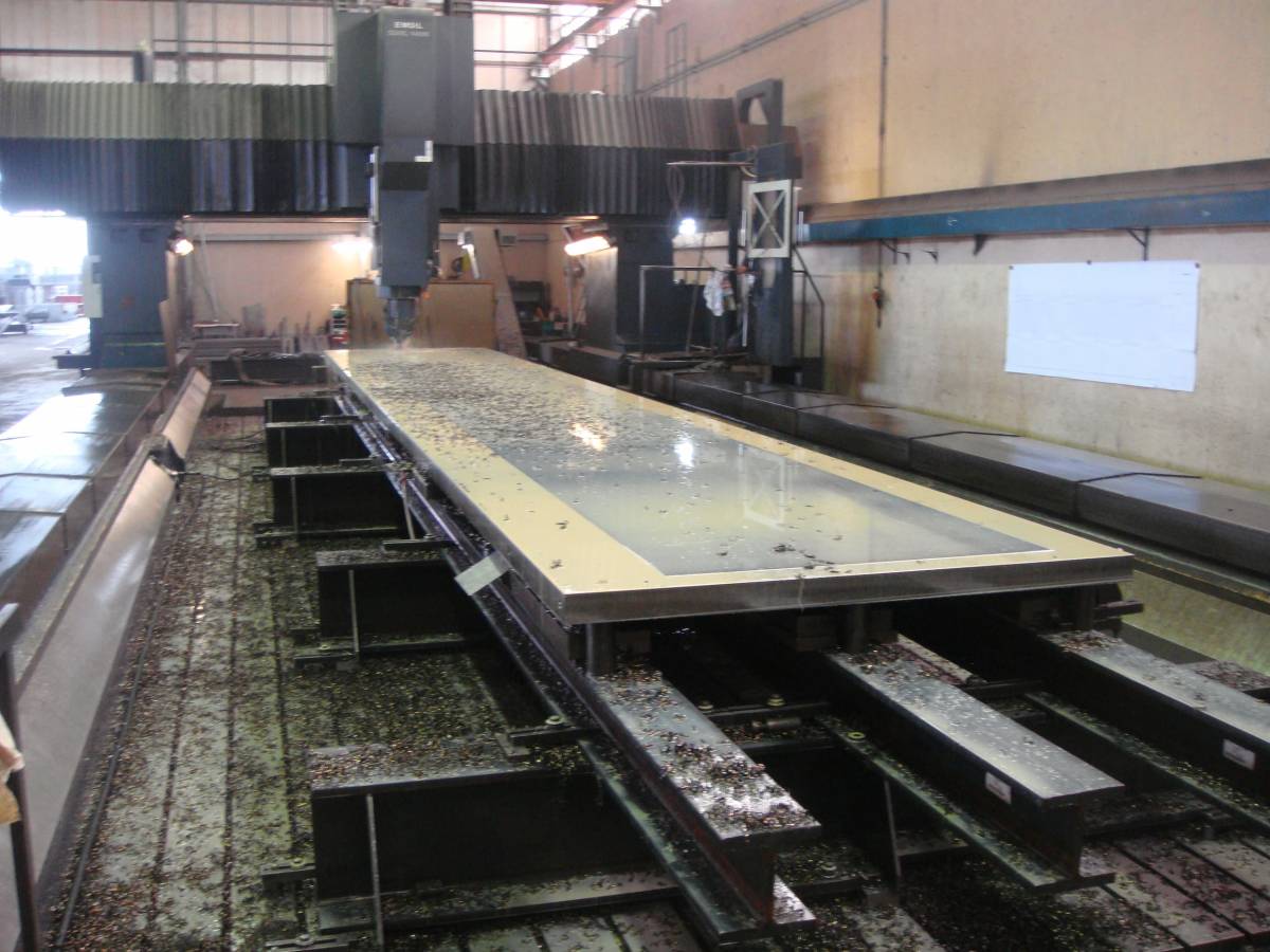 Nella nostra officina disponiamo di tre fresatrici a montante mobile in grado di effettuare lavorazioni meccaniche su un’area complessiva di 24 metri di lunghezza, 3,6 metri di altezza e 1,5 metri di larghezza. Questo ci consente di effettuare forature e filettature su semilavorati di grandi dimensioni in un’unica passata, permettendo un notevole risparmio di tempo e di costi per il cliente.