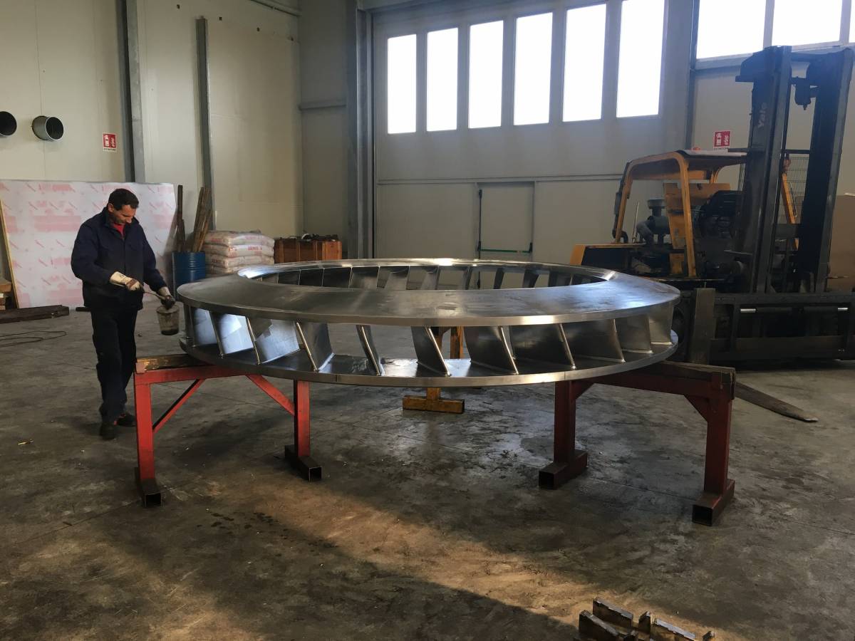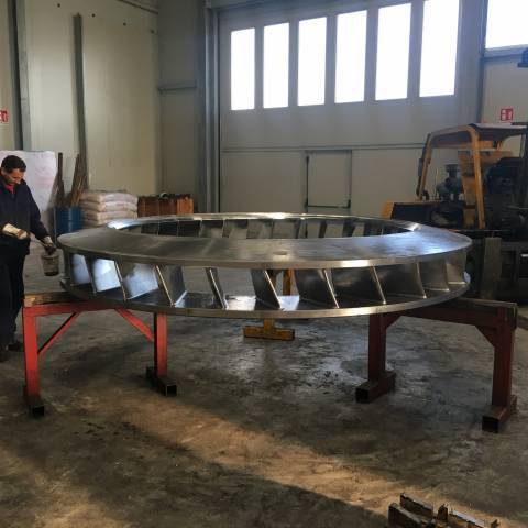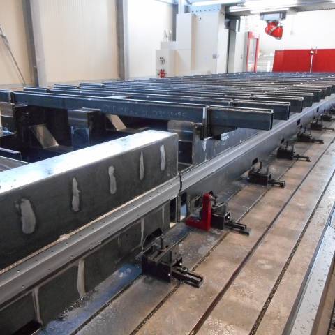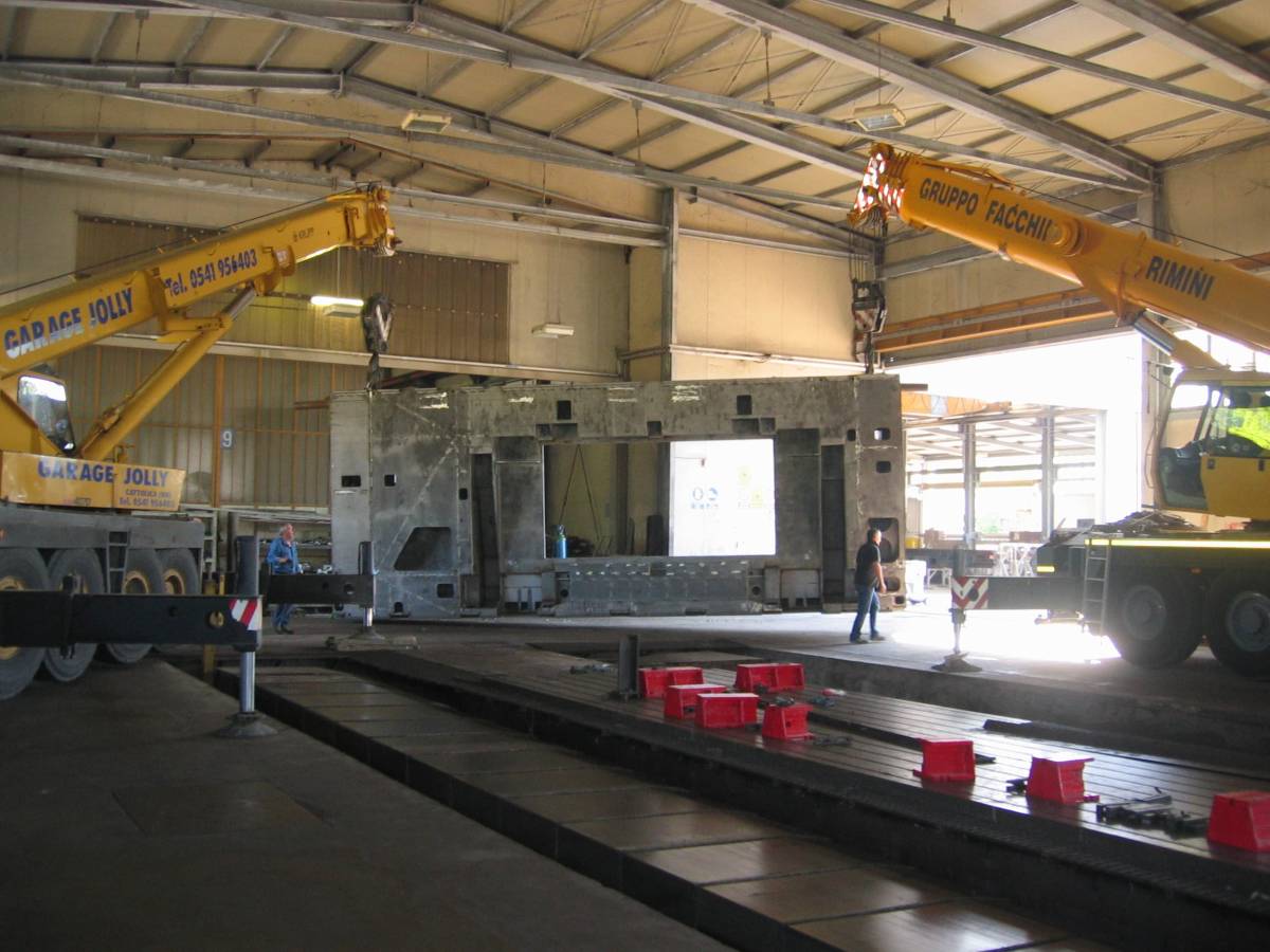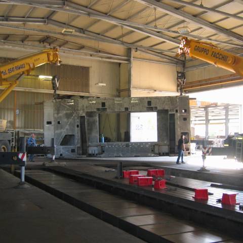 Nella nostra officina disponiamo di tre fresatrici a montante mobile in grado di effettuare lavorazioni meccaniche su un’area complessiva di 24 metri di lunghezza, 3,6 metri di altezza e 1,5 metri di larghezza. Questo ci consente di effettuare forature e filettature su semilavorati di grandi dimensioni in un’unica passata, permettendo un notevole risparmio di tempo e di costi per il cliente.